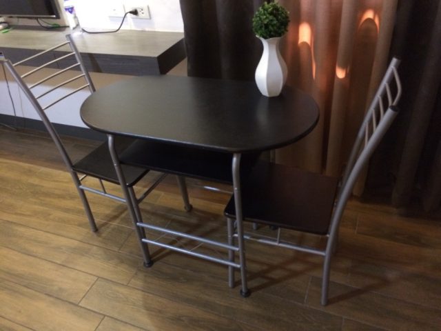 机はテレビ横のスペースを使ってもいいのですが、このテーブルがあるのでここで作業ができます。