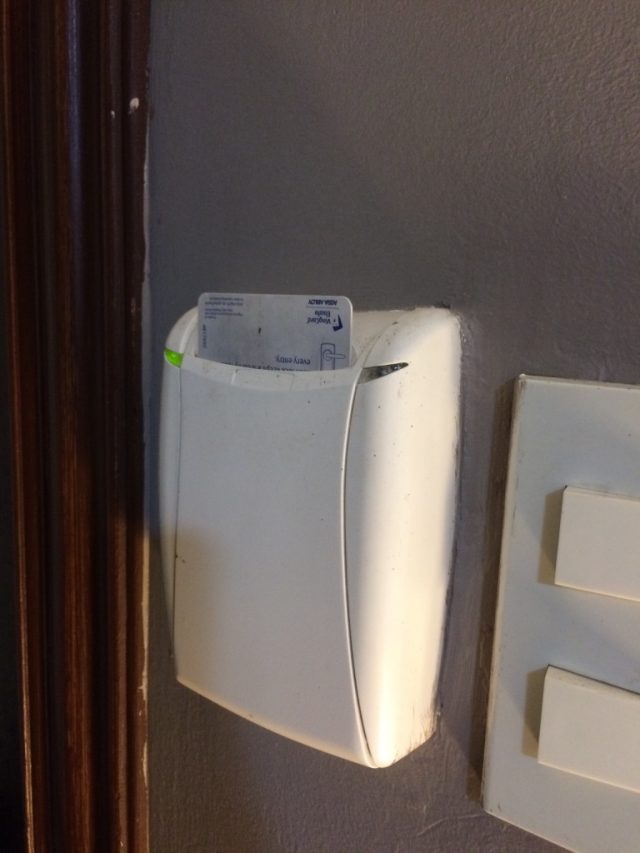 2018年に泊まった時は、部屋の電源の一括ON、OFFが動作せず、困ったのですが、2019年では部屋が違ったからか問題なく動作しました。
