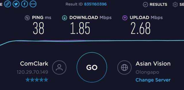 速度: Download:1.85Mbps、Upload:2.68Mbps