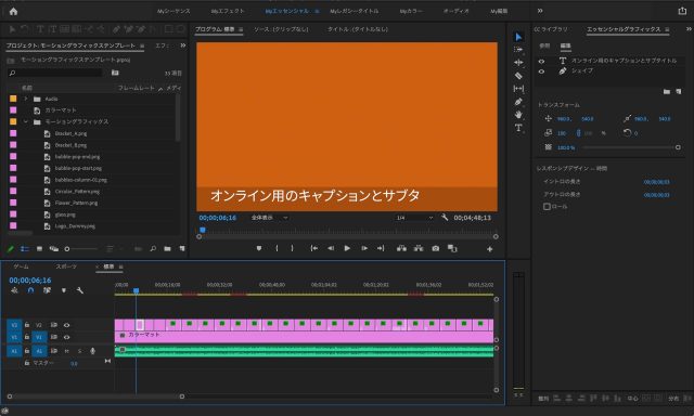 エッセンシャルグラフィックスの構成、アニメーションをまとめてテンプレート化しておくと、プロジェクト間で使いまわせてかなり作業効率があがります。