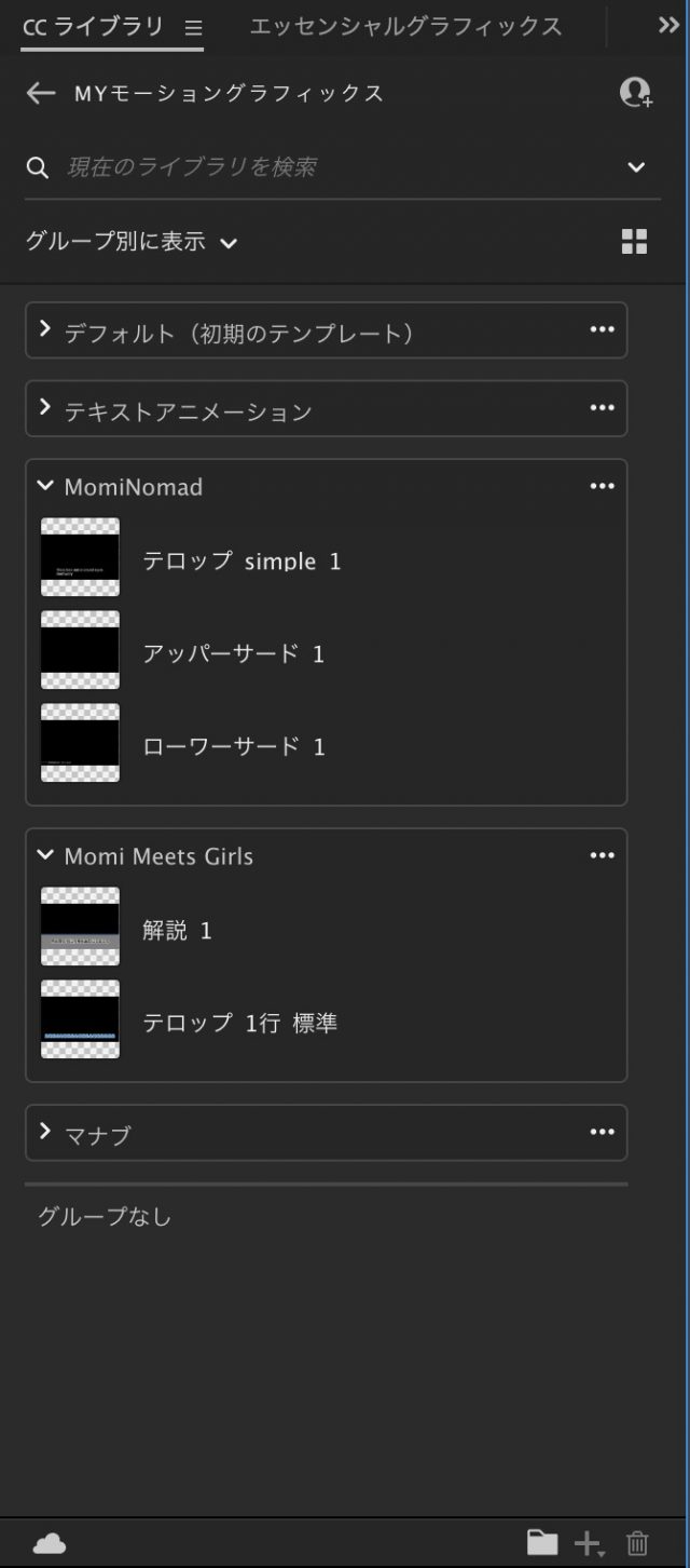 - CCライブラリ内のモーショングラフィックステンプレートをグループ分け