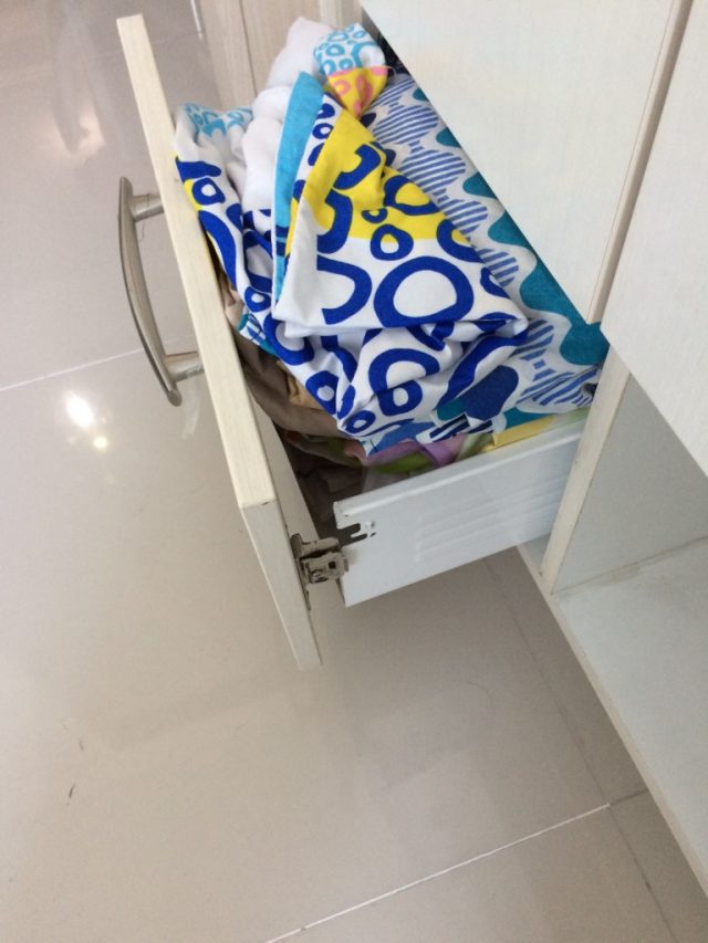 日本の新築のマンションではありえないのですが、棚が閉まりません。ズレてます。