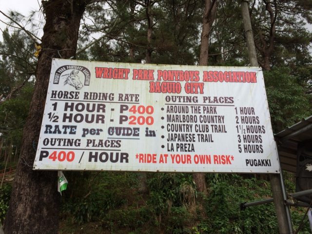 バギオで乗馬が楽しめる場所、ライトパーク(Wright Park)。場所はこちら。