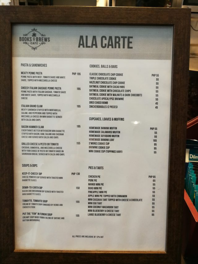 店名にBOOKSとある通り、壁一面に本がたくさん並べられていました。パッと見た感じ、全て英書でタガログ語ではないようです。外国人でも楽しめそうです。ここの本を手に取っているお客は見ませんでしたが。