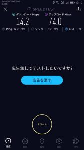 速度: Download: 14.2Mbps、Upload: 74.0Mbps