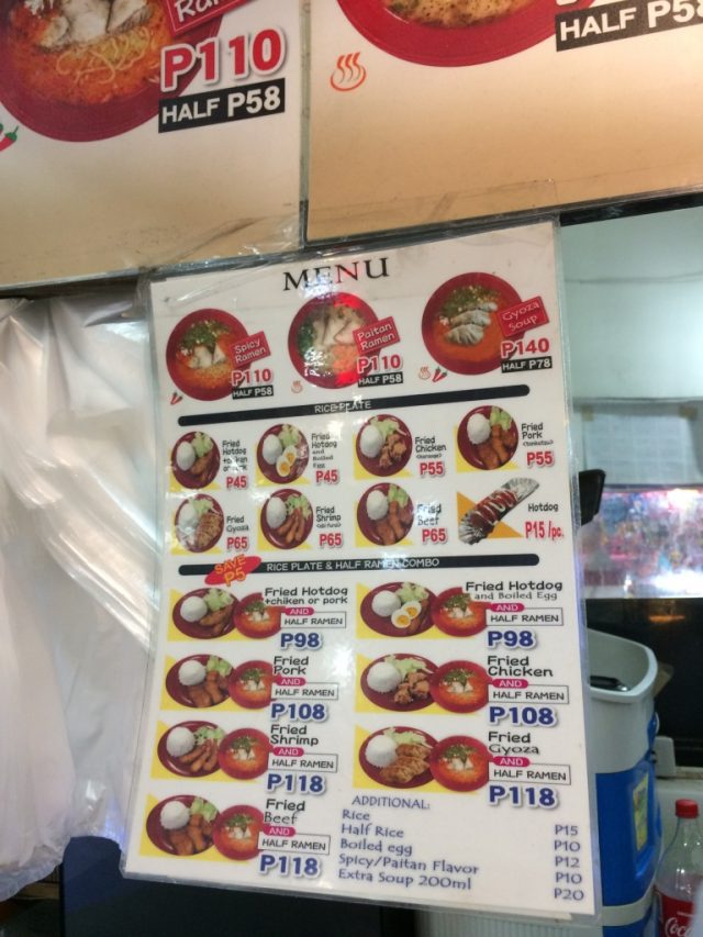 ラーメンですが、麺、味もしっかりしていて、他のラーメン屋だと300ペソの価値はあります。