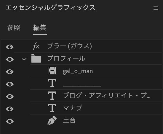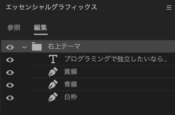 これらを一つのエッセンシャルグラフィックスにまとめることもできますが、音声とのタイミングに合わせてアニメーションさせる際、バラバラの方が揃えやすいのであえて分けています。