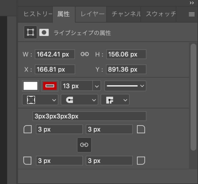 長方形や楕円の長さや色等の設定は「属性」パネルで簡単にできます。