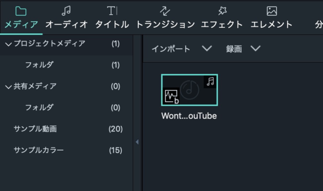 このOfflibertyで抜き取ったサウンドデータをFilmora9にインポートします。