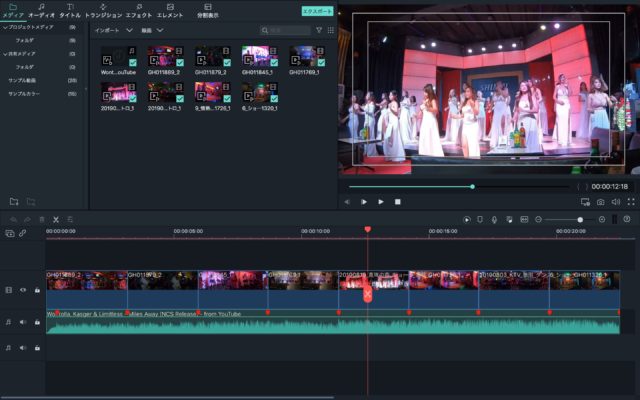 抽出したサウンドをFilmora9に取り込み、動画を配置します。