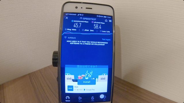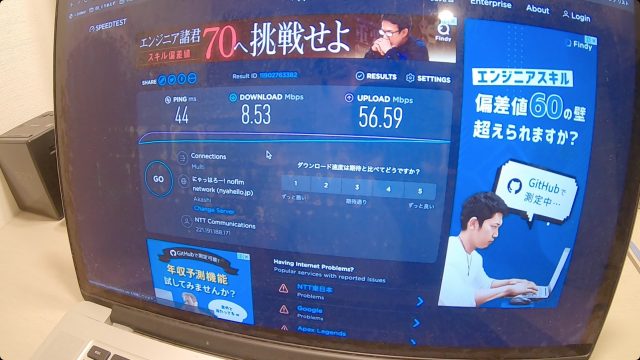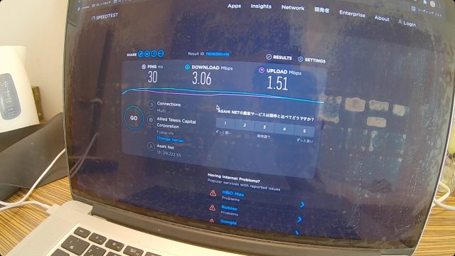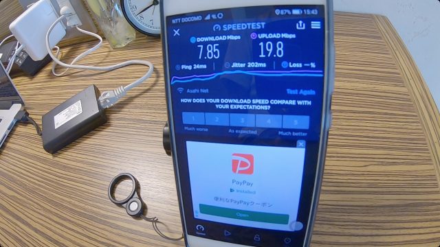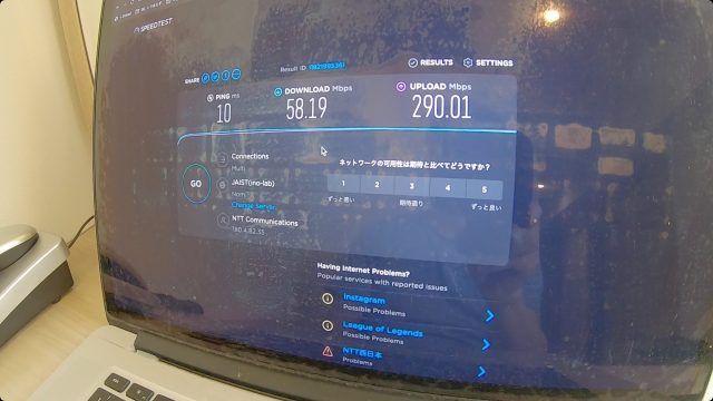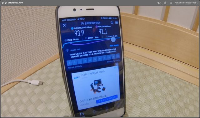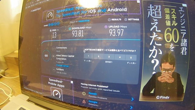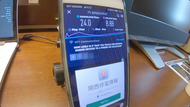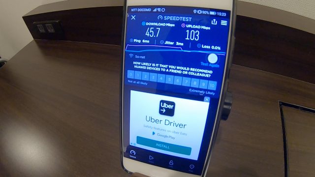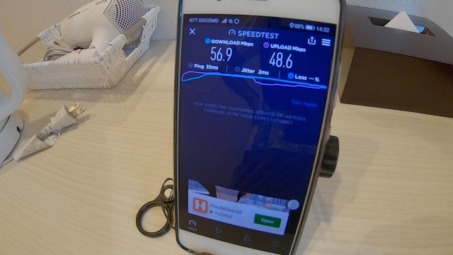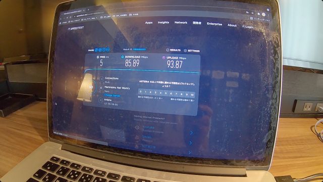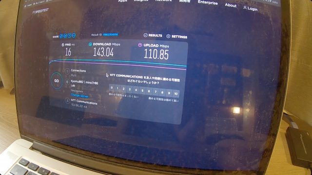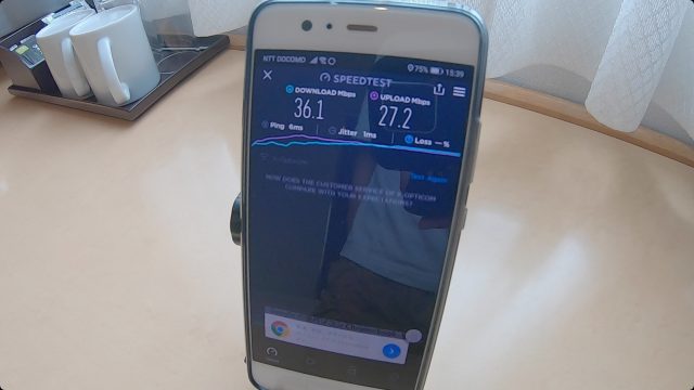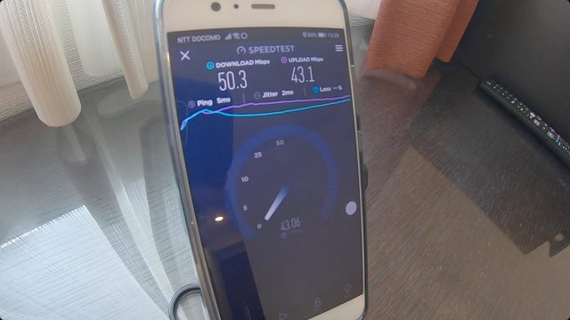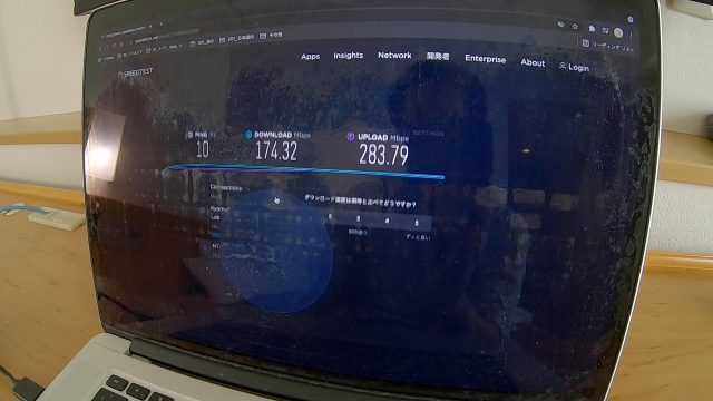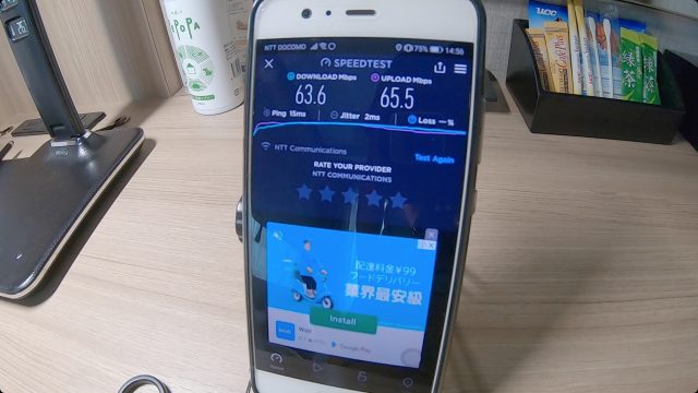 ただ、WiFi速度は爆速で、ダウンロード、アップロードともに100Mbps超えという、これまで経験したことない最高速度を記録しました。