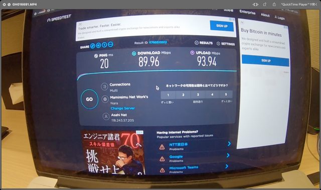 速度: Download: 88.8Mbps、Upload: 93.9Mbps
