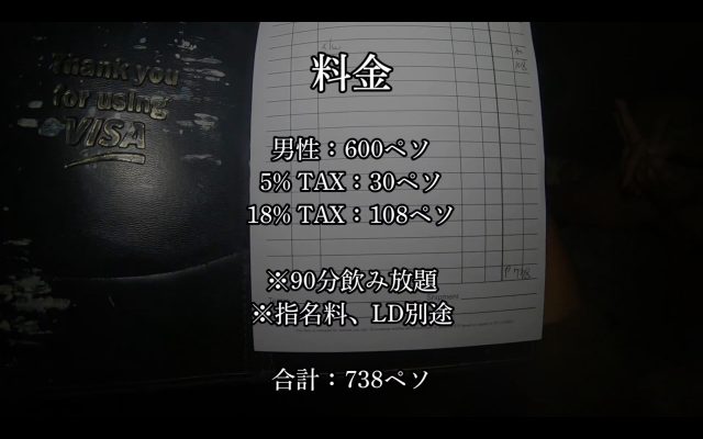 VIPルーム 延長料(60分): 800ペソ (ドリンク含む)