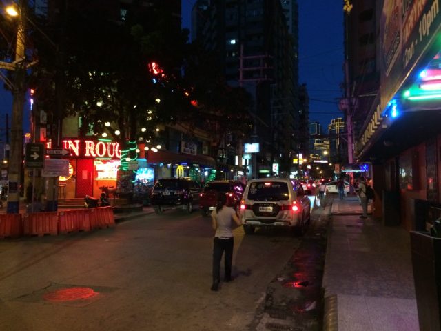 マカティ( Makati )地区にある歓楽街の通り、ブルゴス通り ( P Burgos St )。場所はこちら。