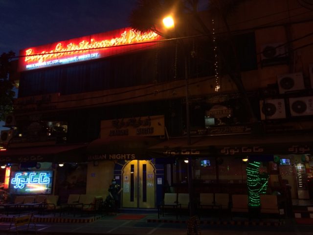 夜に来ると怪しげな色のネオンで場所はすぐに分かるのですが、営業時間前、P.M 8時前に来ると、