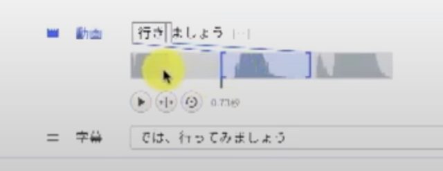 先ほどのVrew解説動画より内容は薄いですが、先ほどでは説明が不足していた内容、発音タイミングを音声波形を見ながら調整について解説されています(7分25秒)。