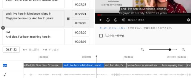 上述の通り、一応YouTube上で字幕は編集できるのですが、操作性が悪く使いづらいです。