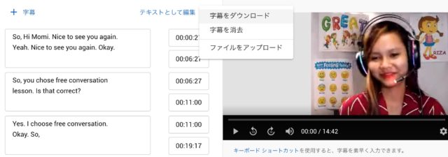 これらMomi Meets Girlsにアップしたネイティブキャンプ(NativeCamp)の動画には英語字幕を入れています。